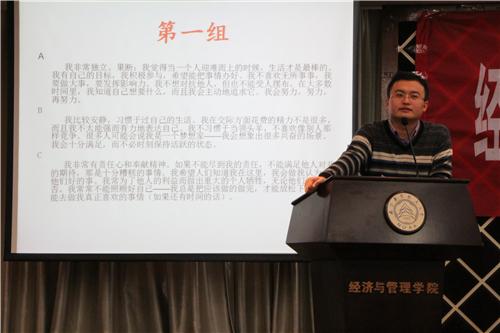 授课中,丁荣茂老师深入浅出的跟学员讲述了中国梦的内涵,南航几代人为实现高水平研究型大学梦想所作的奋斗,激励经管学子“仰望星空,脚踏实地”;裴宇晶老师激情慷慨的给学员们分析人的九种性格,教会学员明白自己个性、接纳自己的短处、活出自己的长处,懂得如何与不同的人交往沟通及融洽相处,与别人建立更和谐的关系;徐川老师则向学员介绍了从古至今的中国传统文化,幽默风趣的语言一次次赢得学员们的掌声;学校八大学生组织主席们则从团干实务的角度向学员传经送宝,分享自己奋斗历程与心路;九游体育 优秀研究生代表李佳兴和刘晓倜与大家分享了她们在援藏支教活动中的感受与体验,无论是西藏的教学教务工作,还是“三下乡”社会福利义工活动,她们的无私和热情让学员们在体悟温暖真情的同时更加深刻理解学生干部的责任与义务。