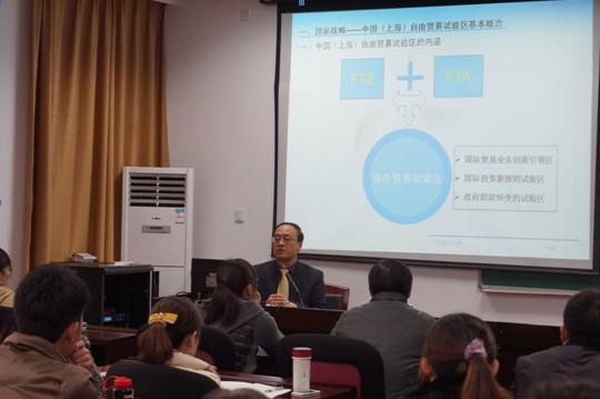 陆启星教授是中国(上海)自由贸易试验区空间布局与体制机制研究课题组负责人,中国(上海)自由贸易试验区总体方案制定组成员,全程参与了中国(上海)自由贸易试验区总体方案的研究和设计。讲座中,他深度剖析自贸区设立的国际和国内背景,系统解析自贸区方案内容及相关政策,阐释未来政府职能的转变、营商环境的优化,以及行业和企业发展机遇。作为自贸区方案研究与制定团队的成员,他帮助师生们深刻理解了中国(上海)自由贸易试验区的战略意义,带领师生共同思考如何把握中国(上海)自由贸易试验区改革先行先试的历史机遇,主动谋划适应全球经济一体化新发展,不断提升政府和企业面向全球的竞争能力和水平。