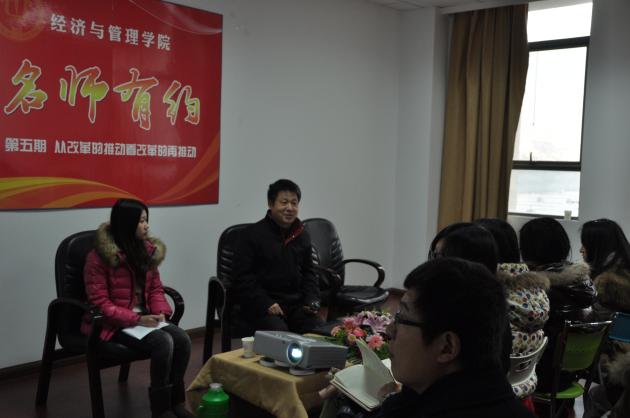 针对研究生王梅提出的,如何看待中国18亿亩土地的红线问题,江可申引经据典,结合美国经济学家亨利的观点表示要设定相关红线,注重国家调控,不能因为短期市场的投机让土地丧失生产力。本科生党支部代表张京说,江老师的讲述不仅让她对十八届三中全会中的改革精神更加了解,也促进了对课堂上经济学知识的理解,更加懂得作为经管学生应该有经济政治敏锐性,关注国家大事。13级辅导员佘明说:“江老师深入浅出地阐述了十八届三中全会提出的关键内容和重要观点,让我们的学习不仅停留在表面上,他的讲述方式亲切生动、引人入胜,让我受益匪浅”。