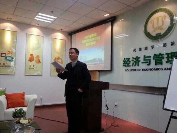 周德群院长阐述了教师教学发展分中心的成立背景,指出教师教学发展中心是教师“分享、交流和提升”的平台,主要目标是致力于帮助教师教学力的跃升。他结合学院2014年的工作目标,对分中心的任务提出了设想。高教研究所和教务处领导对经管分中心的成立表示祝贺,并表示将为分中心的机制和模式研究提供支持。