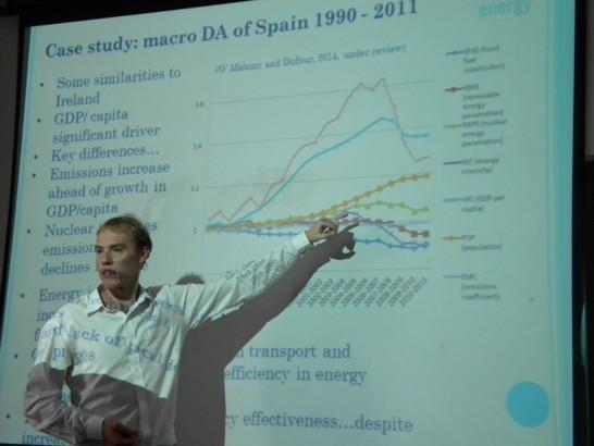 6月23日至25日,西班牙IMDEA能源研究所的“欧盟玛丽居里”博士后研究员Tadhg O’ Mahony应国际合作交流处和九游体育 能源与环境经济研究所的共同邀请,在九游体育 大楼704室做了4场以能源经济和碳排放研究为主题的系列精彩报告。题目分别为:(1)Understanding the driving forces of energy and carbon emissions;(2)Energy and technological development: Who wins and who controls?(3)The social and cultural dimensions of energy and emissions: Grasping the opportunities for human development;(4)Scenarios for energy, stories creating the future。周鹏教授主持报告会。