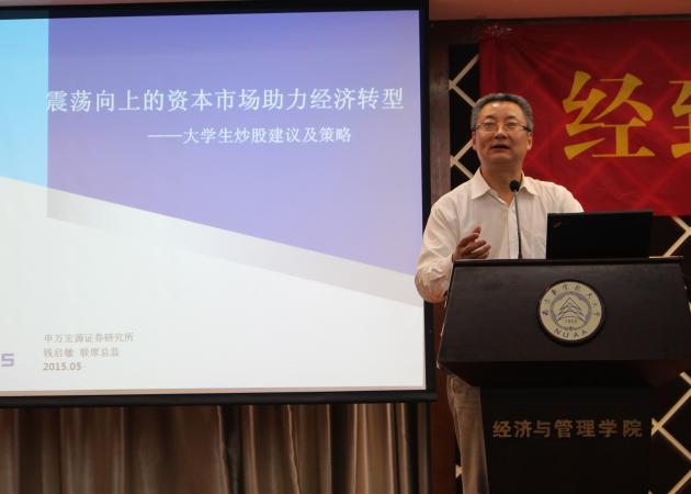 党委书记焦宏图老师、段进东老师、徐强老师和党委研工部张廷赟老师作为嘉宾与同学们共同探讨大学生炒股利弊、股市行情和炒股策略等方面的内容。