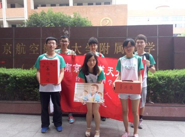 九日,无数的学子结束十年寒窗苦读,在试卷上绘出独立人生的第一笔。江宁高级中学,天印高级中学和南航附中的学子走出考场时,迎接他们的不只是父母的笑靥,还有南航西藏支教团的志愿者们。南航西藏支教团是由经管学子组织,校内学子志愿参加的团队,旨在为当雄、那曲和山南的孩子们送去学习的希望,此次,志愿者们来到高中,募捐高考生的爱心文具。