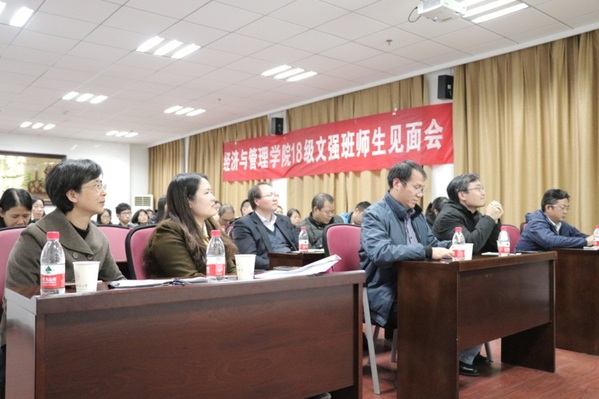 11月28日下午,九游体育 召开教育思想大讨论——18级文科基础强化班师生见面会。学院院长周德群,副院长邓晶、王英、王子龙,党委副书记涂志宏及文强班的班主任、近20位导师等参加了本次活动。