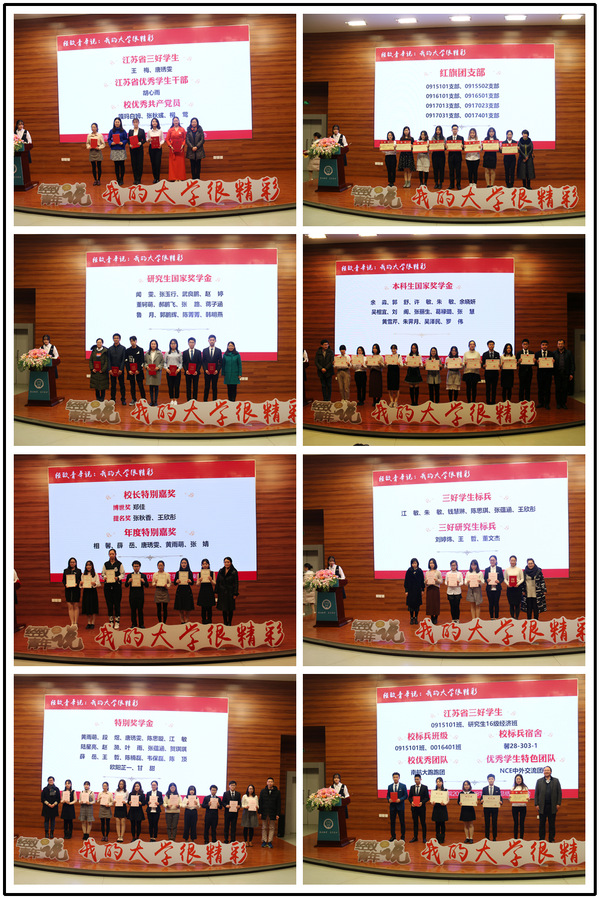 过程中,到场嘉宾先后为国家奖学金、省三好学生、省优秀学生干部、省先进班级、校优秀共产党员、校年度特别嘉奖、校三好学生(研究生)标兵、校标兵班级、校宿舍、校红旗团支部、校优秀学生(特色)团队等集体和个人颁发证书。