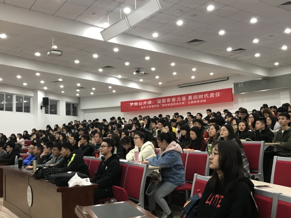 本次两会公开课的主讲人是17年级全体团支书。梦想公开课上,她们分别为同学们介绍了两会的基本概况、讲述了民生问题、解读了两会提案对民生问题的改善。短视频和ppt讲解相结合,让两会课堂不再枯燥;情景剧表演幽默风趣,让同学们在捧腹大笑中了解民生问题。这堂公开课,涵盖了教育、就业、医疗保障、反腐、食品安全等与老百姓切身利益息息相关的社会热点问题,以一种生动有趣的形式,拉近了同学们与全国两会的距离。