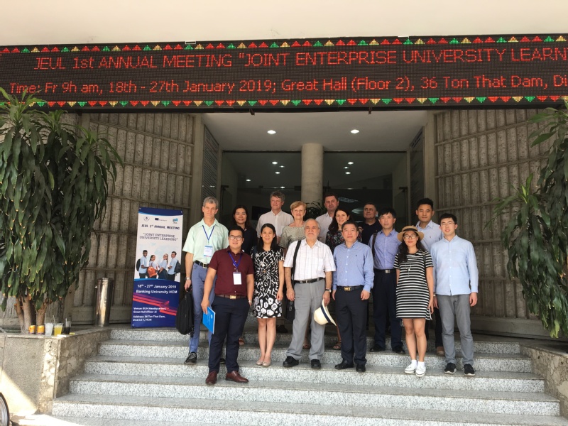 王英副院长、何沙玮老师一行5人赴越南胡志明银行大学参加欧盟Erasmus+资助项目JEUL校企合作国际研讨会2019年会。