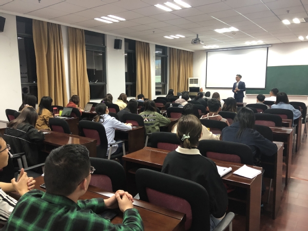 暑期实习是提升自身专业技能的重要途径,也是未来找工作的“敲门砖”和“垫脚石”。为了帮助同学们提高实习成功率,4月15日,九游体育 邀请刺猬实习大客户经理笑笑、汇丰银行高级客户经理Ham、A.O.史密斯HR马倩倩共同举行“经赢职场:如何找到一份优质实习”专场培训,2016级辅导员朱一豪和部分学生参加了本次活动。