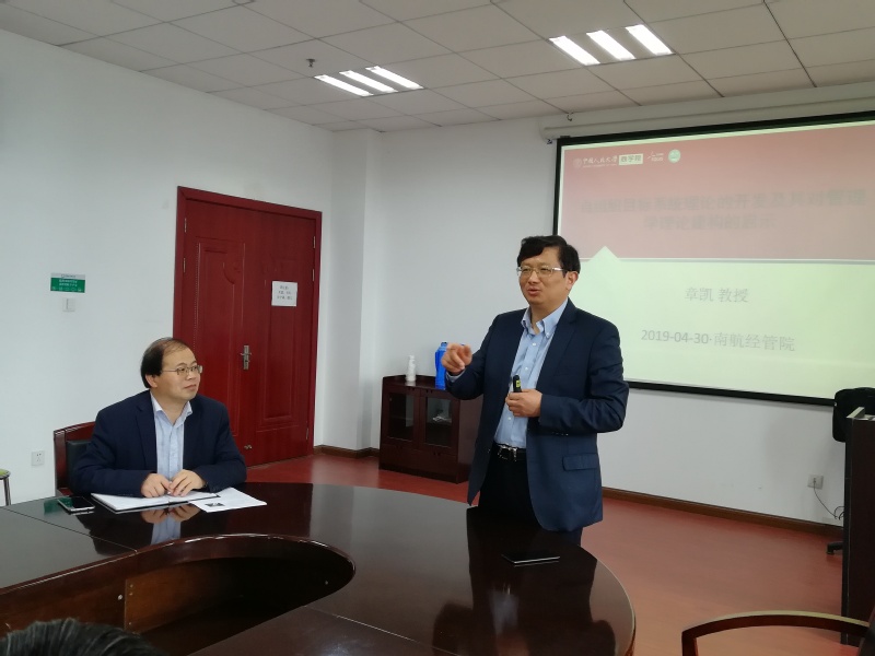 2019年4月30日上午,中国人民大学商学院章凯教授应我院人力资源管理研究所的邀请,在学院702会议室作了题为“自组织目标系统理论的开发及其对管理学理论建构的启示”的学术报告。报告由胡恩华教授主持,东南大学经济管理学院的吕鸿江教授、九游体育-九游体育app-九游体育官网 的张龙教授、王凌云副教授等老师和研究生参加了本次学术讲座。