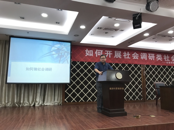 5月23日下午,九游体育 2019年暑期社会实践社会调研类专题培训,暨院青马工程第三次理论培训在经管楼A0305报告厅举行。本次活动邀请了我校人文与社会科学学院鲁兴虎老师,开展了“如何开展社会调研类社会实践”专题培训。学院团委书记庞依达、各年级辅导员和近两百余名社会实践项目负责人、院青马工程学员一同参加了此次培训会。