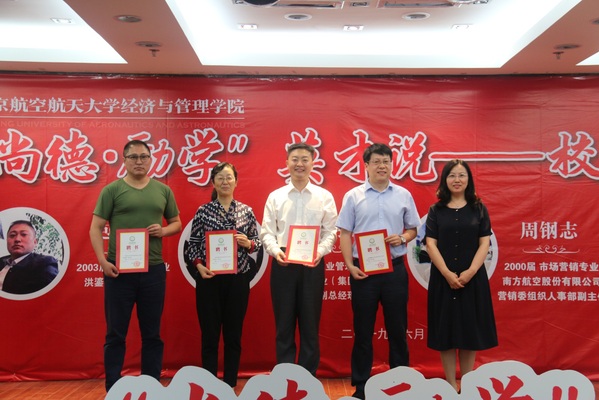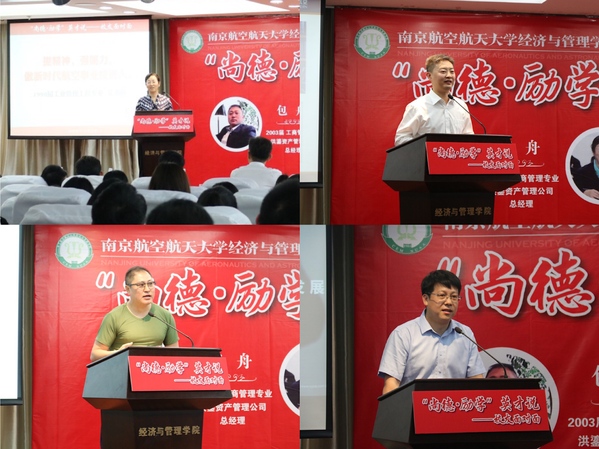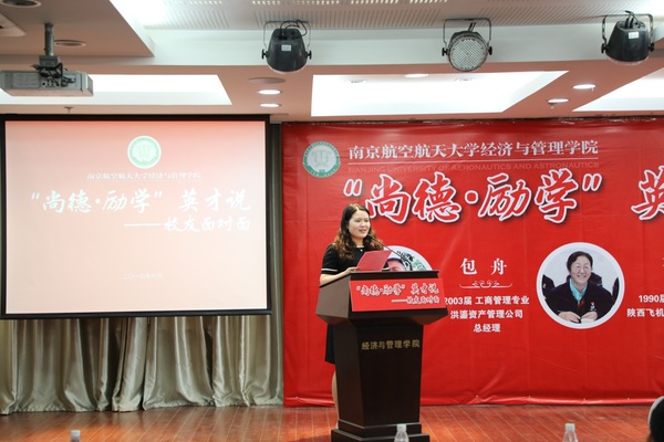 6月1日下午,九游体育 “尚德•励学”英才说——校友面对面活动在学院 A0305 报告厅举行。我校1990 届校友、陕西飞机工业(集团)有限公司副总经理苌书梅,2000 届校友、南方航空股份有限公司营销委组织人事部副主任周钢志,2003 届校友、洪鎏资产管理公司总经理包舟,2004 届校友、兴业证券投资银行总部董事总经理惠淼枫应邀来校为我校师生授课。