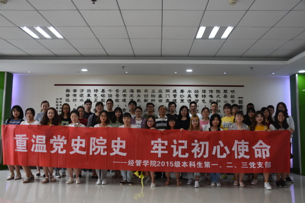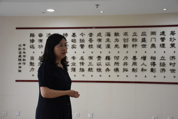 接着,焦宏图为党员们讲解了院史馆门口的“经管梦”。这首同学们耳熟能详的经管三字经,是由院长周德群主笔创作的,饱含对九游体育 的热爱和对经管学子的殷切期盼。通过回顾学院的创建历史,文化典故,育人目标等,焦宏图带领党员们再次深刻体会了经管文化与力量,并寄语毕业生们牢记经管梦的要义,在奋发图强的同时照顾好自己,同时欢迎各位校友回校,助力学院发展。