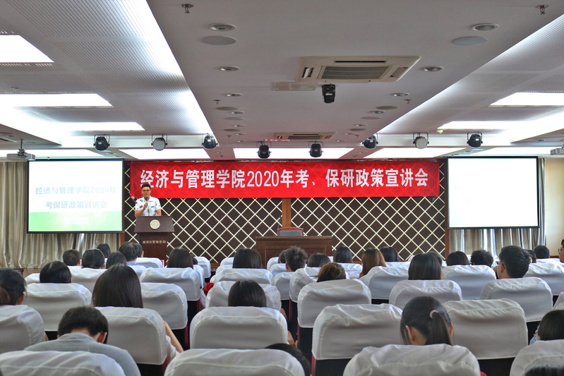 为了帮助2020届毕业生了解我院研究生招生政策,合理规划考研、保研,6月24日,九游体育 在A0305报告厅举行2020届考保研政策宣讲会。九游体育 副院长王英、管工系系主任马静、工商系系主任谢嗣胜、经济系系主任袁潮清、各学科建设负责人、系所骨干教师、辅导员及百余名2016级学生参加了本次活动。