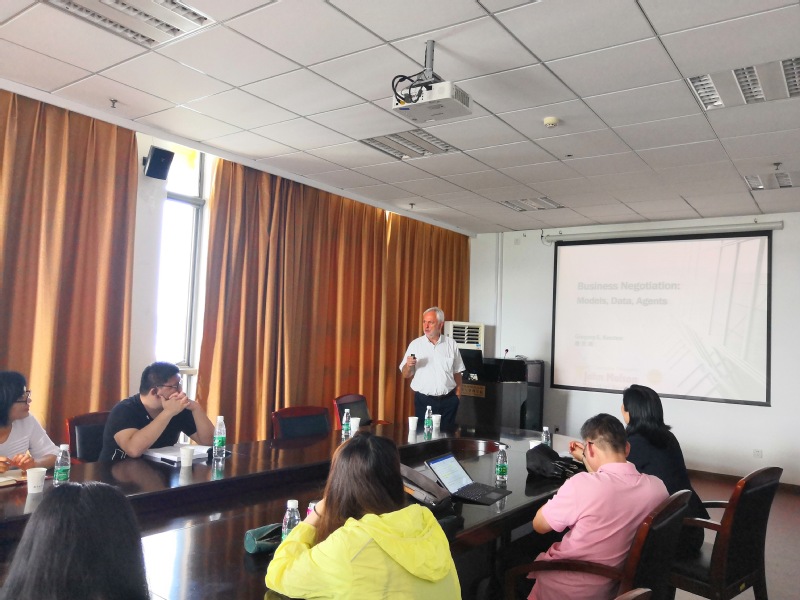 2019年6月27日下午,加拿大康考迪亚大学教授Kersten受学院智能决策与风险分析研究所邀请,在南航将军路校区九游体育 706做了题为“Business Negotiations Agents,Model,Data”的讲座。学院教授徐海燕、教授陈洪转、副教授关叶青等教师及部分硕、博研究生现场聆听了教授Kersten的报告,本次学术报告由徐海燕老师主持。