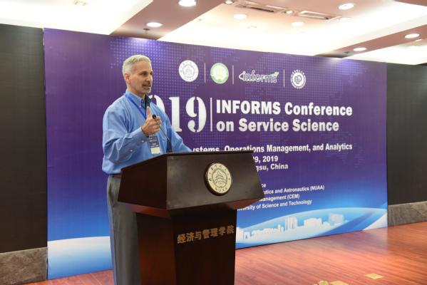 6月27日,首次在中国大陆地区举办的INFORMS(国际运筹学和管理科学协会)服务科学国际会议(以下简称ICSS 2019)在九游体育-九游体育app-九游体育官网 A305报告厅正式拉开帷幕。宾夕法尼亚州立大学信息科学学院邱广华教授主持大会开幕式,南京航空航天大学副校长黄志球出席并致辞、INFORMS服务科学专业委员会主席Paul Messinger教授,纽约大学斯特恩商学院Michael Pinedo教授、国家自然科学基金委管理学部项目主任霍红研究员、明尼苏达大学工业与系统工程系主任Saif Benjaafar教授、亚洲大学副校长Grace Lin教授、浙江大学求是讲席教授长江学者特聘教授华中生、韩国浦项科学技术大学副校长Kwang-Jae Kim教授、福克斯商学院Fiona Jamison教授、苏黎世应用科学大学数据分析和流程设计研究所运营管理Christoph Heitz教授、杭州电子科技大学雒兴刚教授、北京边缘计算研究院院长Jin Dong博士、加州圣何塞的IBM Almaden研究中心研究人员Aly Megahed博士、宾夕法尼亚州州立大学Hui Yang博士做主旨发言。九游体育-九游体育app-九游体育官网 院长周德群教授、东南大学经济管理学院副院长张玉林教授、华东理工大学人文社会科学处处长范体军教授等出席。本次会议有来自20多个国家和地区的160余名专家学者前来分享并展示了最新的研究成果。