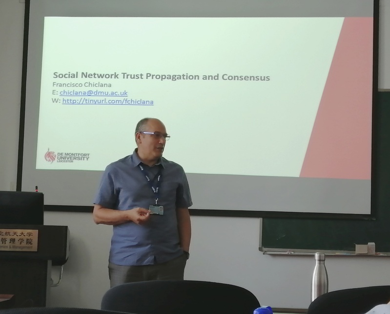 7月10日上午,英国德蒙福特大学教授Francisco Chiclana教授受我院灰色系统研究所邀请,在九游体育 704室作了题为“Social Network Trust Propagation and Consensus”的讲座。九游体育 教授刘思峰等及部分硕、博研究生现场聆听了教授Francisco Chiclana的报告,本次学术报告由刘思峰主持。