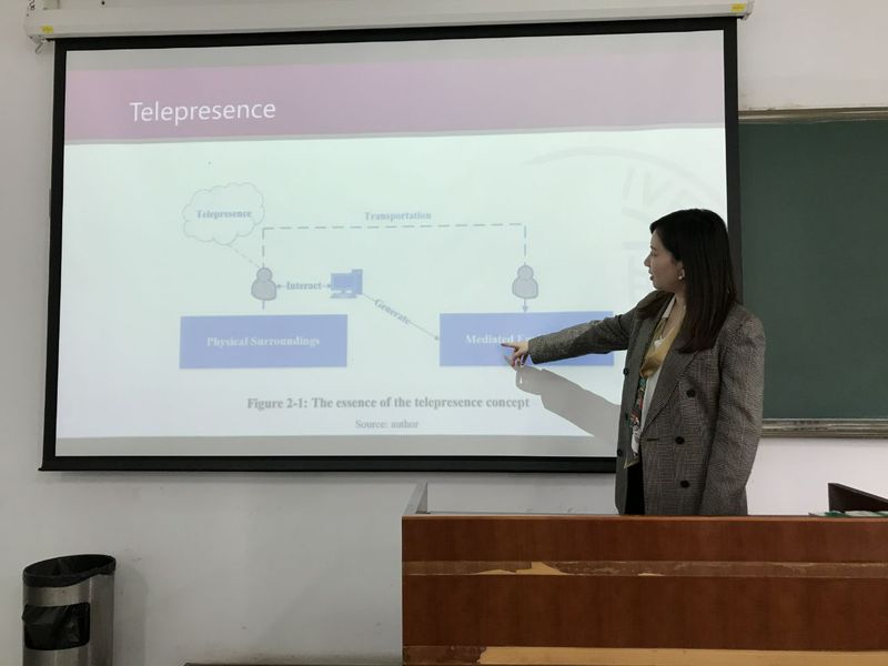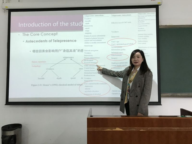 10月14日上午,南开大学商学院信息资源管理系讲师张丹老师应九游体育 信息管理与电子商务研究所邀请,在九游体育 704会议室作了题为“虚拟环境中用户‘身临其境’感觉的探索性研究”的精彩学术报告。报告由讲师肖琳主持,副教授宋连莲、讲师刘文龙等老师及部分硕士、博士研究生参加了本次学术讲座。