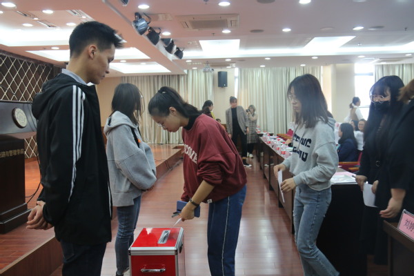 在大会选举环节,全体党员代表按照民主、公正、透明的原则,在经民主推荐产生的11名学生党总支委员候选人基础上进行了差额选举,投票产生了中共九游体育-九游体育app-九游体育官网 第四届学生党总支委员会。最终涂志宏、刘小杨、康冲、田苑娜、朱一豪、胡心雨、徐国长、刘婷炜、曹智博当选新一届委员。