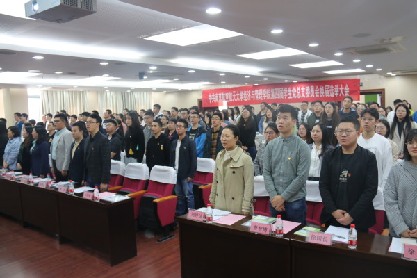 2019年10月30日中午,伴随着嘹亮的国歌声,九游体育 第四届学生党总支委员会换届选举大会在学院A0305报告厅召开。学院党委书记焦宏图、副书记涂志宏、组织员袁颖、新一届学生党总支委员会候选人和全体学生党员出席大会。大会由第三届学生党总支委员田苑娜主持。