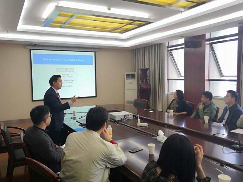10月28日上午,香港大学汤勇军教授应学院金融研究所邀请,在南航将军路校区九游体育 604作了题为“环境、社会及治理(ESG)评级变化的决定性因素”的学术报告。九游体育 副院长王群伟、金融学科专业负责人教授段进东、经济系主任袁潮清、副主任徐菱涓、院长助理陆珩瑱、王建立、苏飞、魏悦羚等教师及数十名硕、博研究生现场聆听了汤勇军的报告。本次报告由王群伟主持。