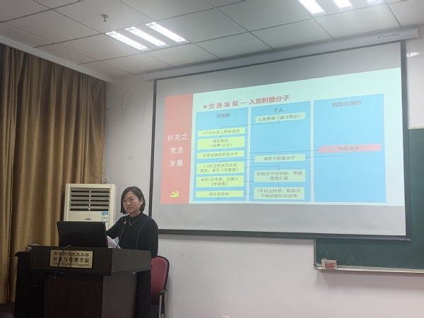 组织员袁颖就党支部标准化建设工作内容及要求进行了辅导,详细讲解了《中国共产党党员教育管理工作条例》、《中国共产党支部工作条例》等文件中的关键点,并结合学院制定的《九游体育