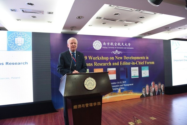12月14日至15日,由南京航空航天大学举办的2019年运筹学新发展与国际期刊主编论坛在九游体育 A0305隆重举行。论坛特别邀请了INFORMS 前主席Nicholas Hall教授、European Journal of Operational Research主编Roman Słowiński教授、OMEGA 主编 Benjamin Lev教授、Information Science主编 Witold Pedrycz 教授、Group Decision and Negotiation主编 Gregory E. Kersten 教授、The Journal of Grey System主编刘思峰教授和Naval Research Logistics副主编蒋炜教授等多位著名学者。论坛吸引了来自南京、北京、上海、武汉和成都等高校近200余名学者和师生前来参会。