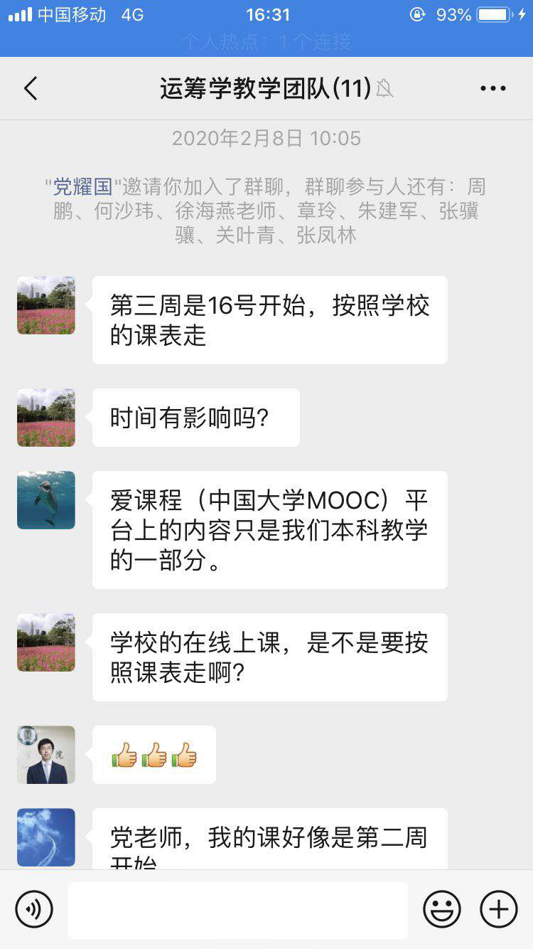 2020年2月初,新年初始,《运筹学》团队按照教育部《关于在疫情防控期间做好普通高等学校在线教学组织与管理工作的指导意见》和教育厅相关文件精神,根据“停课不停教、停课不停学”要求,在团队负责人党耀国教授的组织下,《运筹学》团队的11位教师积极交流新学期线上线下课程准备过程中的经验、问题与想法,有序组织新学期线上教学的资源共享、教学视频、习题库建设、答疑设计、教学任务等活动开展。