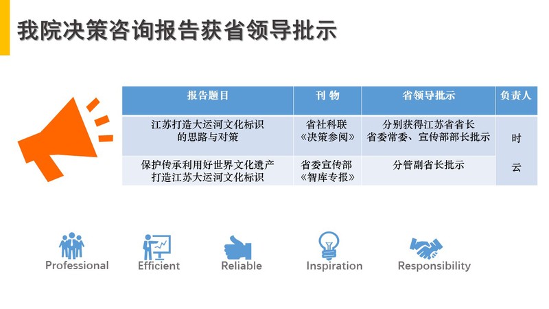 近期,我院时云老师撰写的决策咨询报告《江苏打造大运河文化标识的思路与对策》在省社科联《决策参阅》上刊登,并分别获得江苏省省长和省委常委、宣传部部长批示。该报告针对江苏大运河文化标识建设中存在的问题进行了深入分析,从信息化提升、特色化挖掘、城市协作联动、政策协同推进、航运绿色发展等方面提出了对策建议。