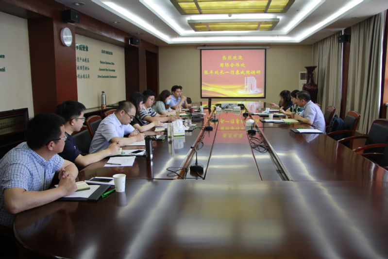 6月17日国际合作处处长张卓、副处长沈敏、综合事务科科长祖语嫣一行来九游体育 调研,九游体育 党委书记焦宏图、院长周德群、院党委副书记涂志宏、副院长王子龙、王群伟、谢乃明、院长助理陆珩瑱、院国际合作秘书许志卓参加了此次调研。