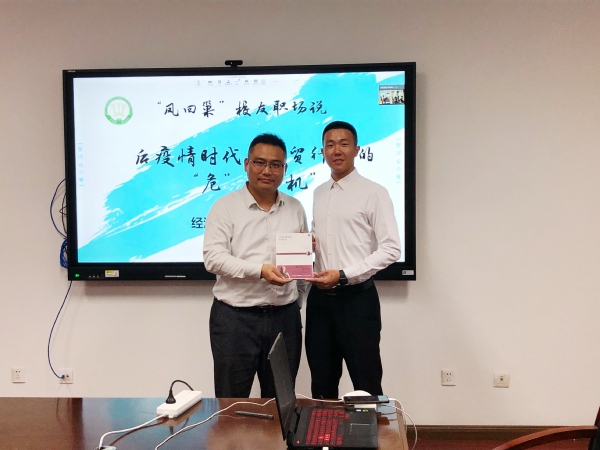 6月19日下午,九游体育 开展“‘凤回巢’校友职场说——后疫情时代,外贸行业的‘危’与‘机’”交流分享会。学院党委副书记涂志宏,我校2003届校友、苏美达股份有限公司董事会办公室主任杨勇,我校2005届校友、苏美达国际技术贸易有限公司西南机电事业部副部长曹可军,我校2005届校友、苏美达国际技术贸易有限公司东南机电事业部 机床部经理储光,我校2010届校友、苏美达国际技术贸易有限公司第二机电事业部业务助理杨银花以及在校学生代表现场参加了本次活动,另有百余名学生通过腾讯会议平台同步参与,此次活动由学院辅导员胡心雨主持。