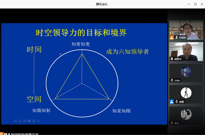 7月5日,清华大学经济管理学院教授陈国权应九游体育 人力资源管理研究所和江苏省人力资源发展研究基地的邀请,在线上为我校师生作了一场“时空领导力”的精彩学术报告。报告由教授胡恩华主持,教授刘思峰、陈万明、冯绍红、年轻教师、博士研究生、硕士研究生等两百余人参加了本次学术讲座。