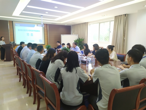管毓贤首先对九游体育 一行的到来表示欢迎,并向大家介绍了海尔合肥公司的基本概况、经营内容、发展态势以及南航毕业生、实习生在海尔公司的发展情况。他指出,海尔集团作为国内电器行业的领军企业,双方在产学研合作、人才培养等方面大有可为。