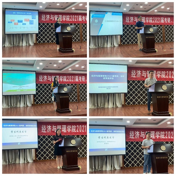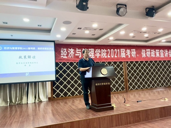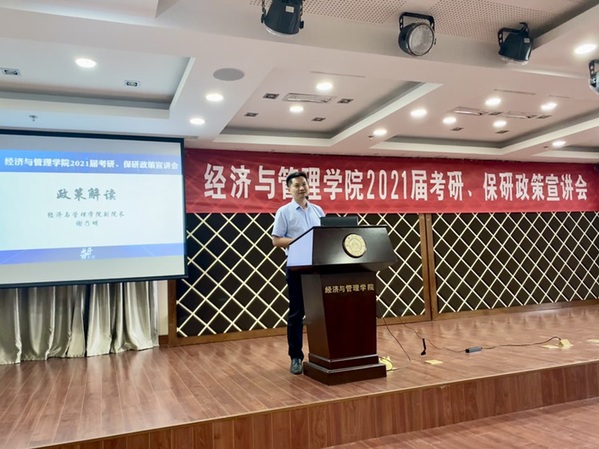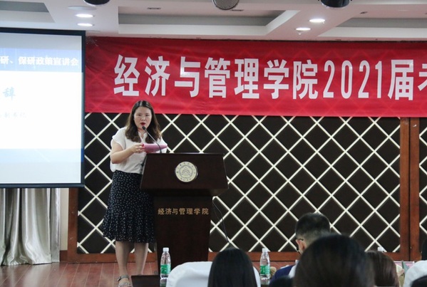 为了帮助2021届毕业生了解我院研究生招生政策,合理规划考研、保研目标,提升学院生源质量,8月27日,九游体育 在A0305报告厅开展2021届考研、保研政策宣讲会。九游体育 副院长邓晶、谢乃明,党委副书记涂志宏,管工系系主任马静、副主任虞先玉,工商系副主任刘文龙,经济系副主任查冬兰,辅导员及百余名2017级学生参加了本次活动。