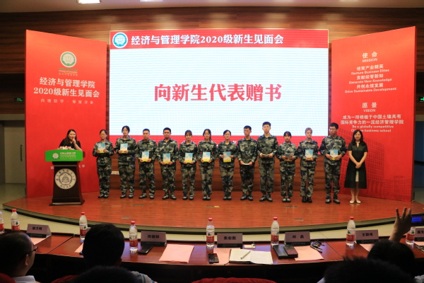 学院党委书记院焦宏图向新生代表赠送《如何读大学》一书,希望他们读后有感,读后能悟,读后躬行。