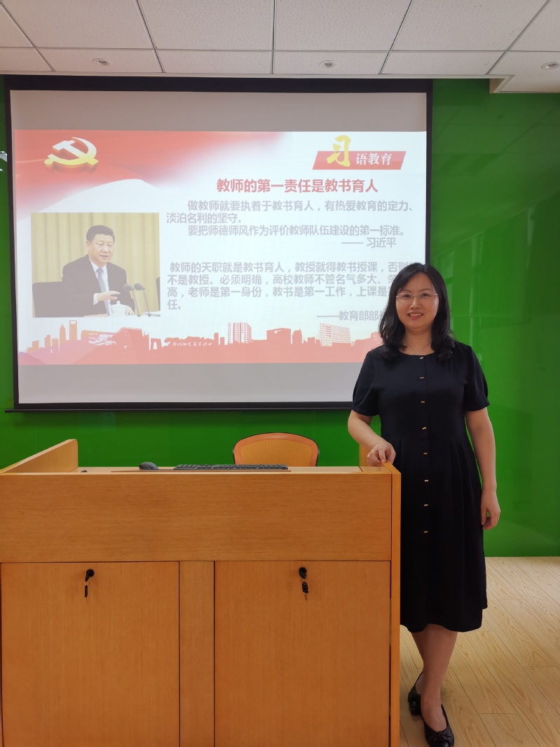 焦宏图书记首先解读了《中共南京航空航天大学委员会关于加强和改进教师思想政治工作的意见》和《南京航空航天大学教职工师德“一票否决”实施办法(试行)》这两个文件,向各位老师明确了党和国家对于教师的宏观要求,又从学校发展实际及教师发展需求的角度,阐明了加强和改进教师思想政治工作的重要性和必要性;接着,她在解读教职工职业行为准则的基础上,又介绍了学校教师职业道德考核、教师培训体系、教师荣誉体系等建设现状。