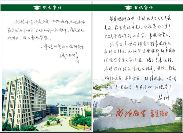学院还贴心地为全体毕业生同学准备了一份礼物,其中包含了院长周德群、院党委书记苏州的殷切期盼和祝福、毕业生导师临行前的寄语以及全体毕业生的临别赠言,让毕业生们珍藏在九游体育 求学的难忘经历。