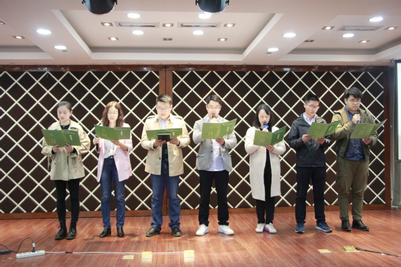 会议首先进行了2021年新教职工的入职仪式。在简短的自我介绍之后,新教工们在工商系新教师丰超的领誓下,手捧“师德师风承诺书”,从坚定政治方向、自觉爱国守法、传播优秀文化、潜心教书育人、关心爱护学生、坚持言行雅正、遵守学术规范、秉持公平诚信、坚守廉洁自律、积极奉献社会等十个方面庄重地完成了入职宣誓,正式开启高校教师的职业生涯。