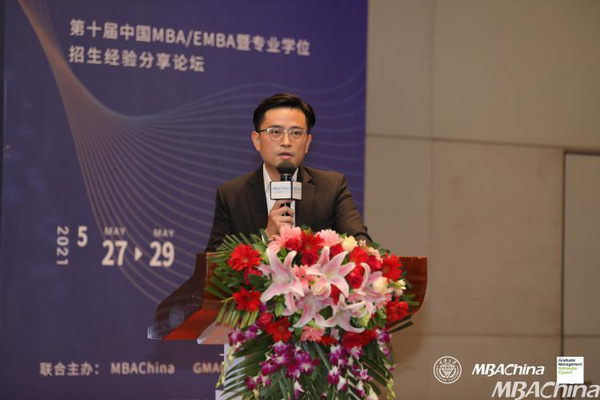 2021年5月28日,“第十届中国MBA\MPA\MEM暨专业学位招生经验分享论坛”在重庆拉开序幕,本次论坛由MBAChina、管理专业研究生入学委员会(GMAC™)、专业学位网联合主办,重庆大学经济与工商管理学院承办。我院MBA教育中心执行主任杜刚、招生与品牌推广办公室主任徐倩、助理孟磊应邀出席了本次论坛。