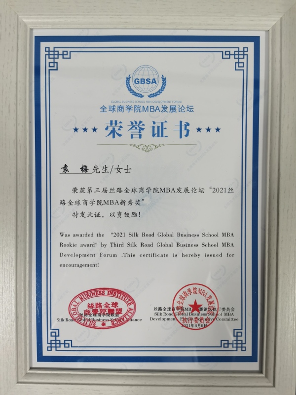 学员袁梅获得“2021丝路全球商学院MBA新秀奖”