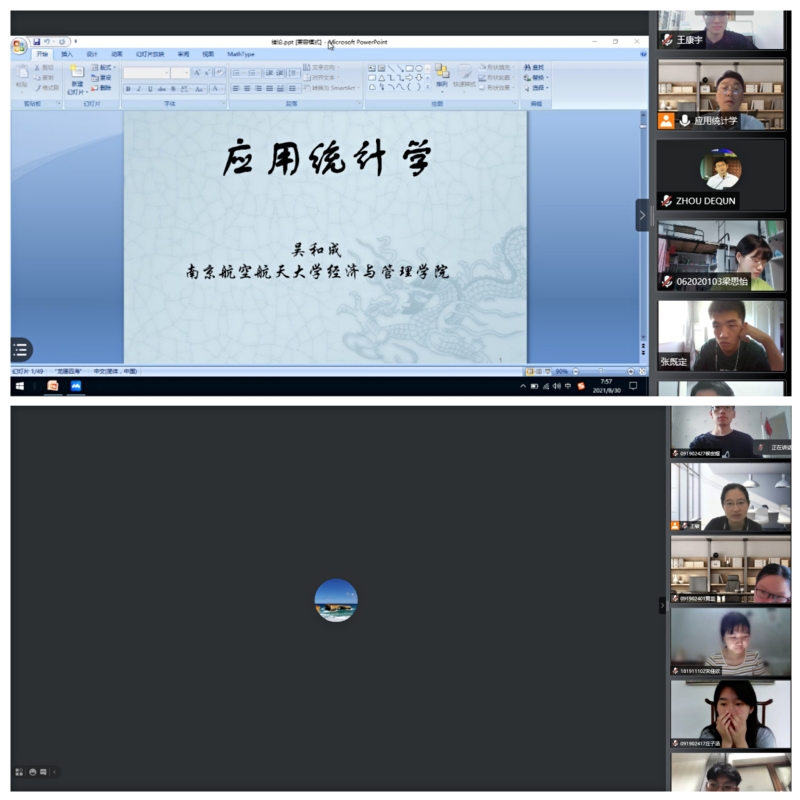 院长周德群在线进入20级管理科学与工程大类本科生《应用统计学》的线上课堂。吴和成老师已经在腾讯会议平台开始了课程导论的讲解。周德群院长参加了课堂的学习并借机对该课堂的老师和同学们表示慰问和关心,鼓励大家高效利用线上教学资源,积极消化课堂专业知识,在教学新形态下把知识学得更加扎实。