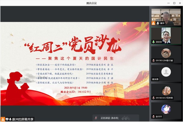 为了及时了解学生开学后思想动态,加强对学生党员的教育引导和形势与政策教育,9月1日晚,九游体育 开展“红周二——聚焦这个夏天的国计民生”党员沙龙,学院党委副书记涂志宏,辅导员康冲,学院学生党员代表、入党积极分子代表100余人参加了本次活动,会议由康冲主持。