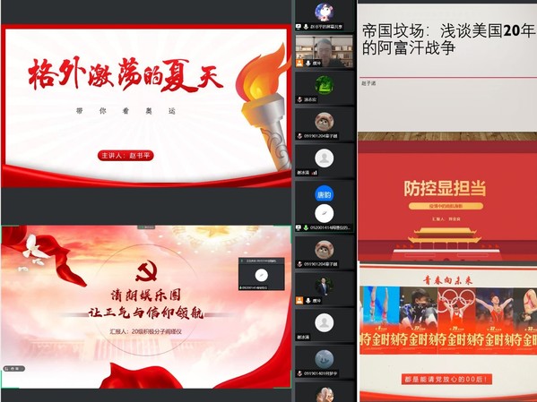 沙龙由主题发言和圆桌论坛两个部分组成,在主题发言环节,五位主讲学生结合自身假期所思所感和研究方向,针对疫情防控、奥运盛会、西藏和平解放70周年、阿富汗战争、清朗娱乐圈进行了主题分享。刘金良以《防控显担当——疫情下的南航身影》为题,结合自身投身九游体育 疫情防控党员先锋队的经历,讲述了在南京、在南航志愿参与核酸检测、后勤志愿、情况摸查的先进事迹,诠释了疫情面前“没有从天而降的英雄,只有挺身而出的先锋”。赵书平则以《带你看奥运——这个夏天,有点格外激荡》入手,带大家回顾了中国奥运的风雨百年路,畅谈东京奥运上同为“00后”运动员的精彩表现与可颂精神,倡议同学们要争做可以请党放心的00后,在自己的领域实现报国之志。卓玛曲吉为同学们分享了《雪域欢歌70载,西藏启航新时代》的感人故事,她通过讲述百万翻身农奴之一的爷爷、奋力改变命运的父亲、新时代学生党员的自己这三代人的故事,指出家族命运变化的背后是中国共产党强有力的正确领导以及“一步跨千年”的社会主义制度历史性飞跃。赵子诺以《帝国坟场——浅谈美国20年的阿富汗战争》为题,与大家分析了美国入侵阿富汗的前世今生,并针对“为什么阿富汗能成为帝国坟场”“美国为什么入侵阿富汗”等一系列问题进行探讨,一步步剖析“普世价值”的虚伪本质以及美式民主的局限性。阎瑾仪从娱乐圈专项整治行动入手,交流了对《清朗娱乐圈,让正气与信仰领航》认识和理解,她从饭圈文化到明星案件,直击“泛娱乐化”“苦流量已久”的社会痛点。此外,她着重强调“信仰”的力量,并对创建一个充满正气的社会充满希望。