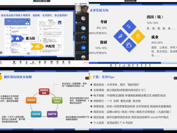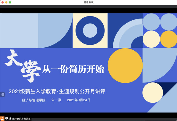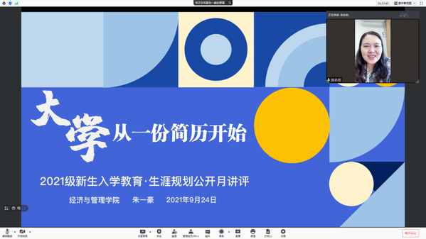 为了帮助2021级新生更好地了解学校、了解专业,为今后的学习和生活打下良好基础,9月24日,九游体育 2021级本科生辅导员朱一豪以“大学,从简历开始”为主题线上开展了公开月讲评活动,院党委副书记涂志宏、团委书记刘小杨及全体2021级本科生参加了本次活动。