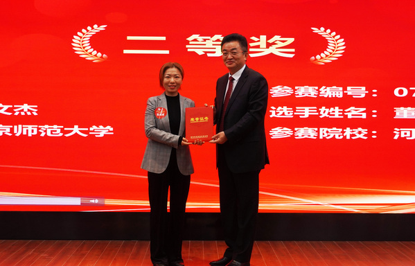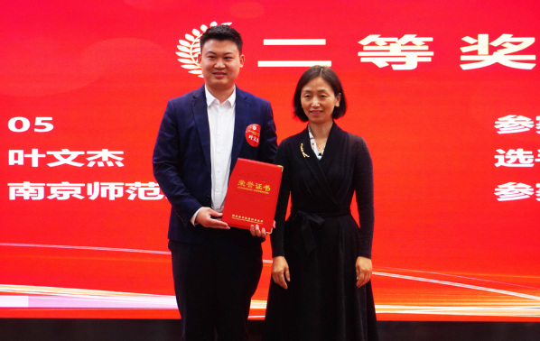 ▲中国邮储银行人力资源部副总经理方哲青女士为南京师范大学叶文杰颁发二等奖获奖证书