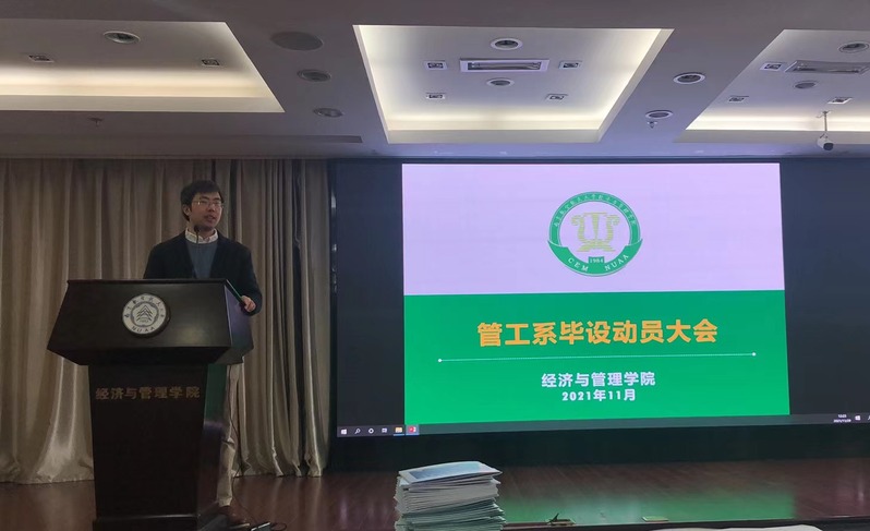2021年11月29日,管理科学与工程系在九游体育 A0305召开,管理科学与工程系系主任米传民教授、管工系教学督导沈洋副教授、系副主任何沙玮副教授、虞先玉副教授等系专业教师及管工系全体大四学生参加了会议。