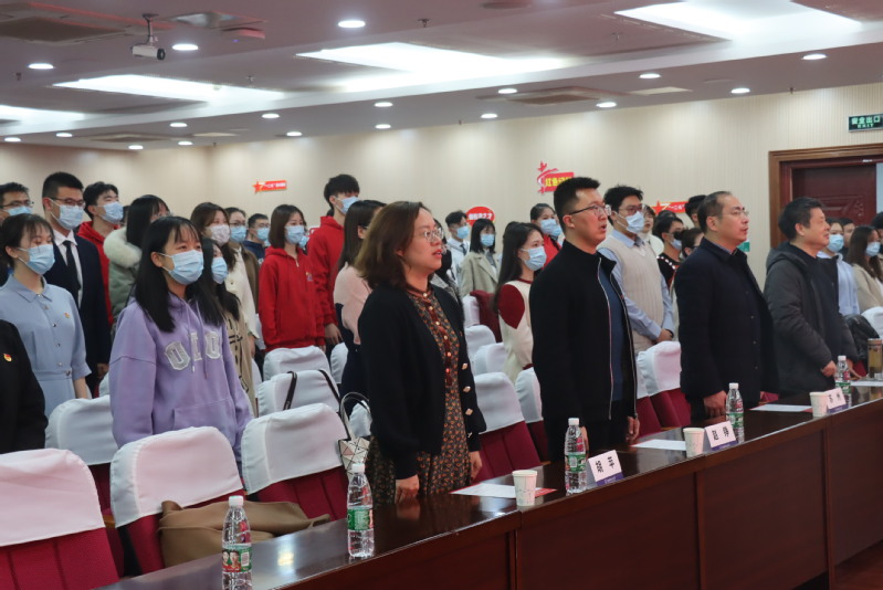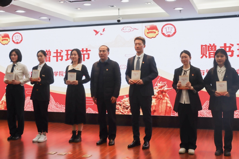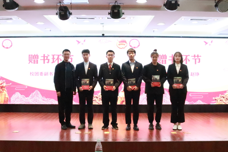 在入团仪式环节,校团委副书记赵铮为新发展团员赠送《习近平与大学生朋友们》一书,勉励大学生团员贯彻习近平新时代中国特色社会主义思想,“到基层中去、到实践中去、到人民中去”。
