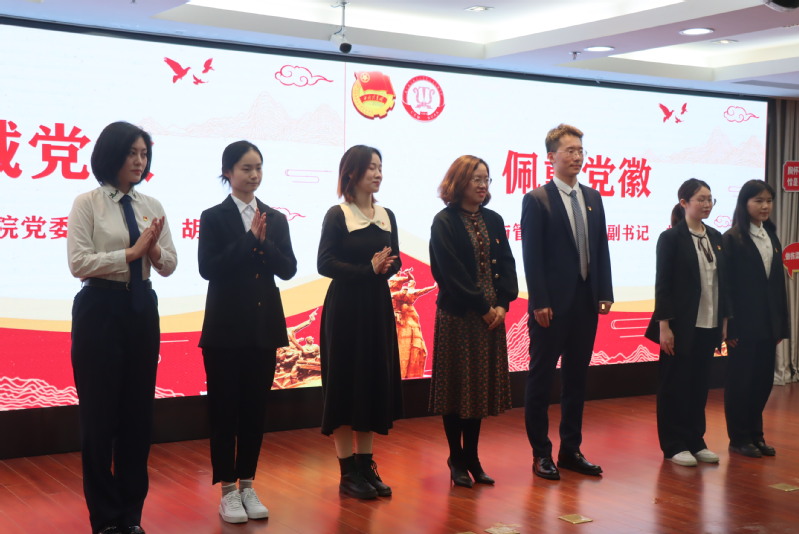 在入党仪式环节,院党委副书记胡苹为新发展党员代表佩戴党徽,院党委书记苏州为他们赠送《中国共产党简史》一书,勉励青年党员勿忘昨天的苦难辉煌,无愧今天的使命担当,不负明天的伟大梦想。