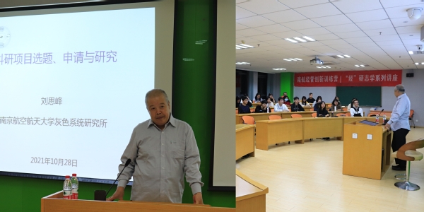 在开营第一讲中,刘思峰老师以“我的科研之路”为主题与同学们分享了自己走上科研之路的契机,真挚地向同学们传递了科研本身的乐趣与享受。在接下来的专题培训中,何沙玮老师借“站在巨人的肩膀上”与“套娃理论”的隐喻,生动地阐明了“一流的科研需要一流的学术信息”这一重要科研素养;张晓恒老师围绕“学术小白如何读论文、写论文”进行细致解答,强调了积累、方法以及信心是科研道路上最不可或缺的要素;何昌清老师联系自身经历,建议同学们尽早规划职业生涯,并就主题“管理学实证研究方法”展开指导;2018级博士研究生谭笑就“管理科学的博大精深”主题发表了自己的心得体会,并通过列举生活实例、引用专业术语等途径,使内容达到学术性与引导性的高度统一。