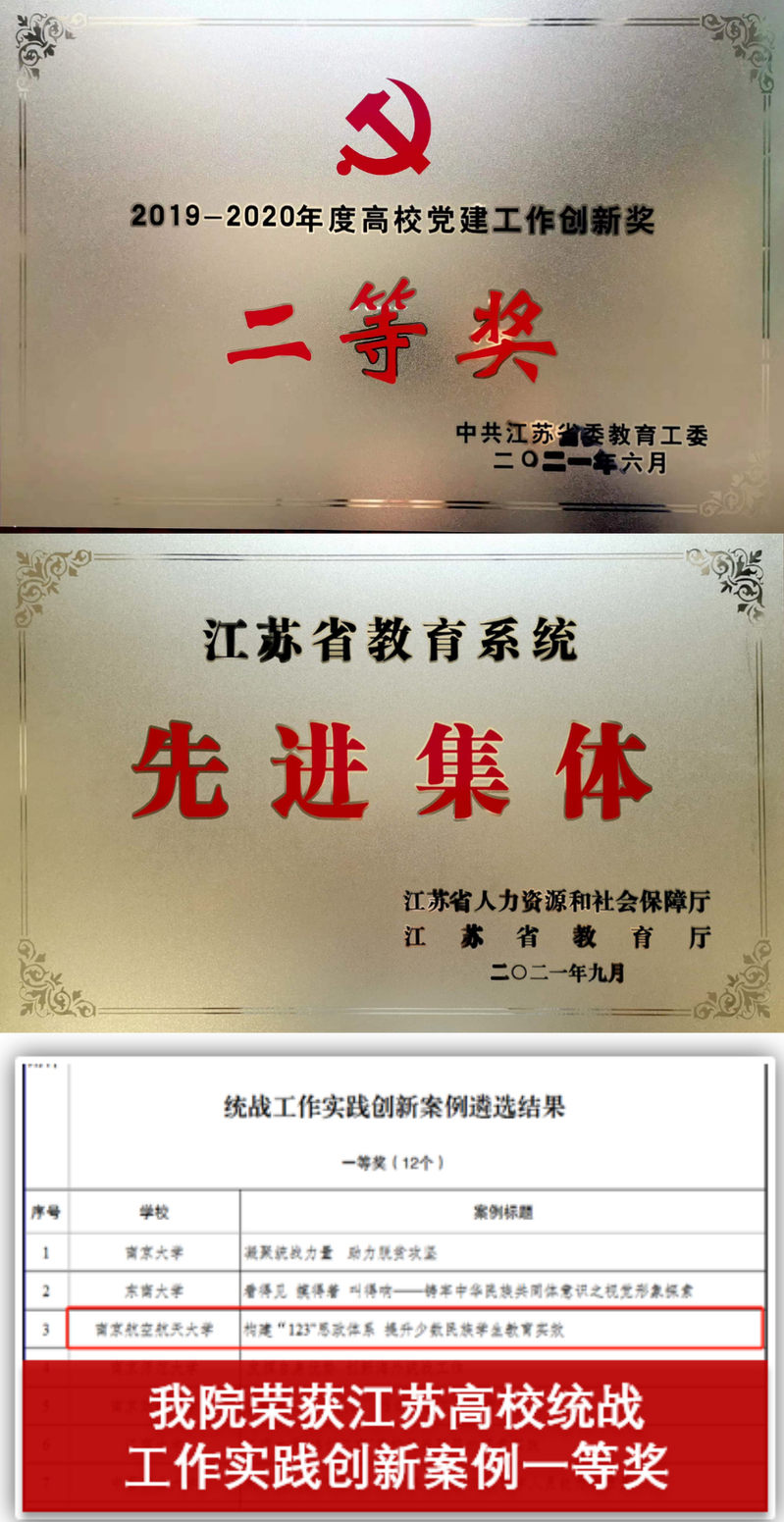 2021年10月,江苏省委教育工委公布了“同心向党·教育有我”统战工作实践创新案例遴选结果,我院党委报送的创新案例“构建123思政体系提升少数民族学生教育实效”创新案例获一等奖(全省高校共12项)。