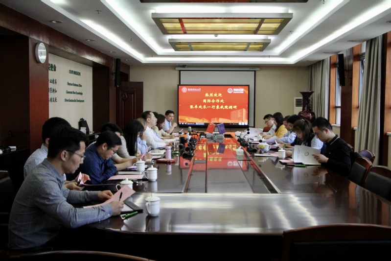 5月18日国际合作处处长张卓、副处长张国权、沈敏、综合事务科科长祖语嫣、国际合作项目科科长田立丰、出入境服务中心主任董峰来我院调研座谈。九游体育 党委书记苏州、院长周德群、院党委副书记胡苹、副院长王子龙、谢乃明、查冬兰、院长助理蒋昕嘉、欧阳林寒、管工系系副主任达高峰、工商系赵亚普副教授、院国际合作事务秘书许志卓参加了此次调研。